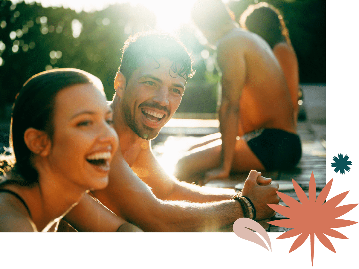- Multiple outdoor kitchens with grills, Big Green Egg, and pizza ovens